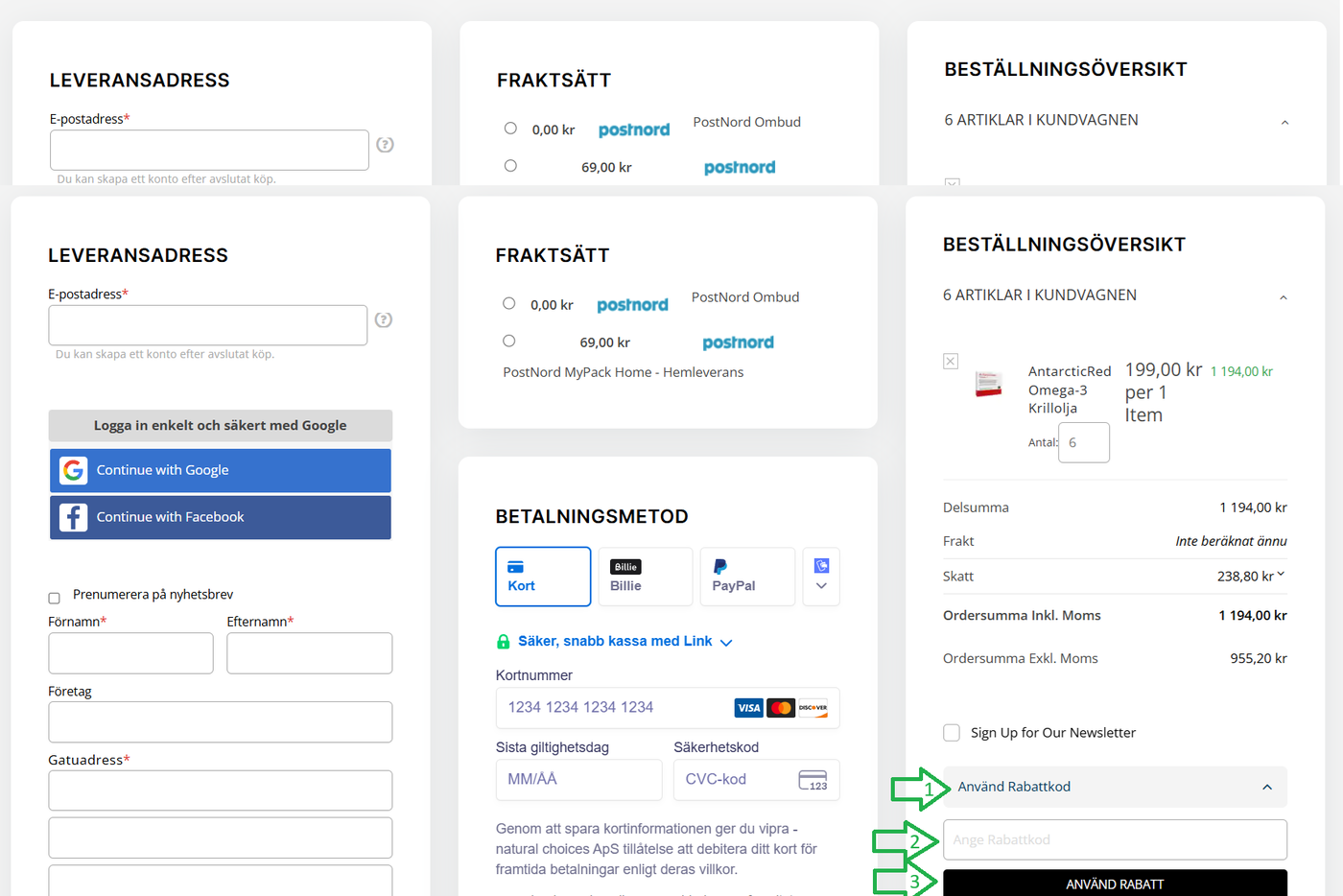 Kontrollera att rabatten syns i orderöversikten innan du slutför köpet.
